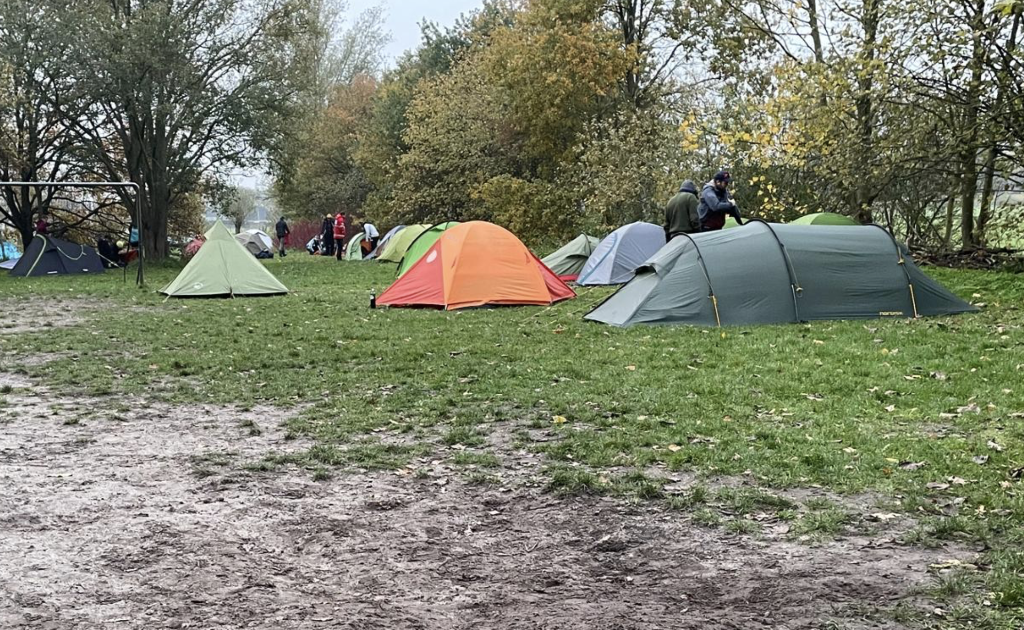 - Deelnemers slapen in tenten
